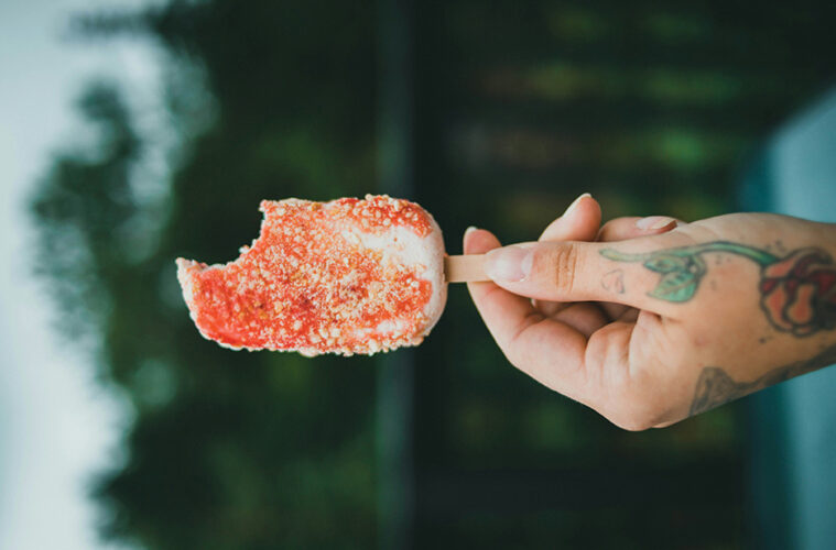 5. Remove the pops from the freezers and cover in white chocolate, then roll through the strawberry crumbs. Eat or keep in the freezer until ready to eat!