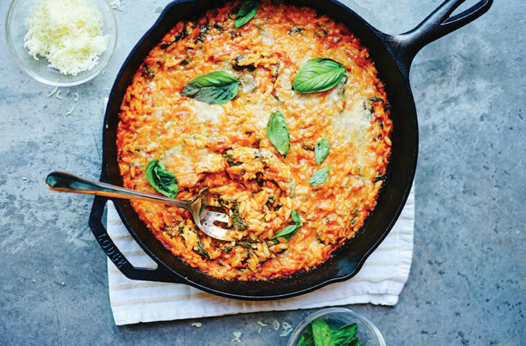 In our home, Italian food is the ultimate comfort. “Pizzaiola” literally means “in the style of the pizza maker,” and this cozy dish takes those familiar all of your favorite flavors, tomato, garlic, herbs, and melty cheese, and folds them into creamy Arborio rice.
