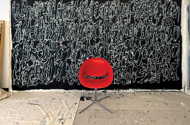 Your work often begins with intuitive marks and movement across the canvas. Can you walk us through how a piece evolves from those early gestures into an abstract expression of meaning, especially when written language begins to dissolve into form?