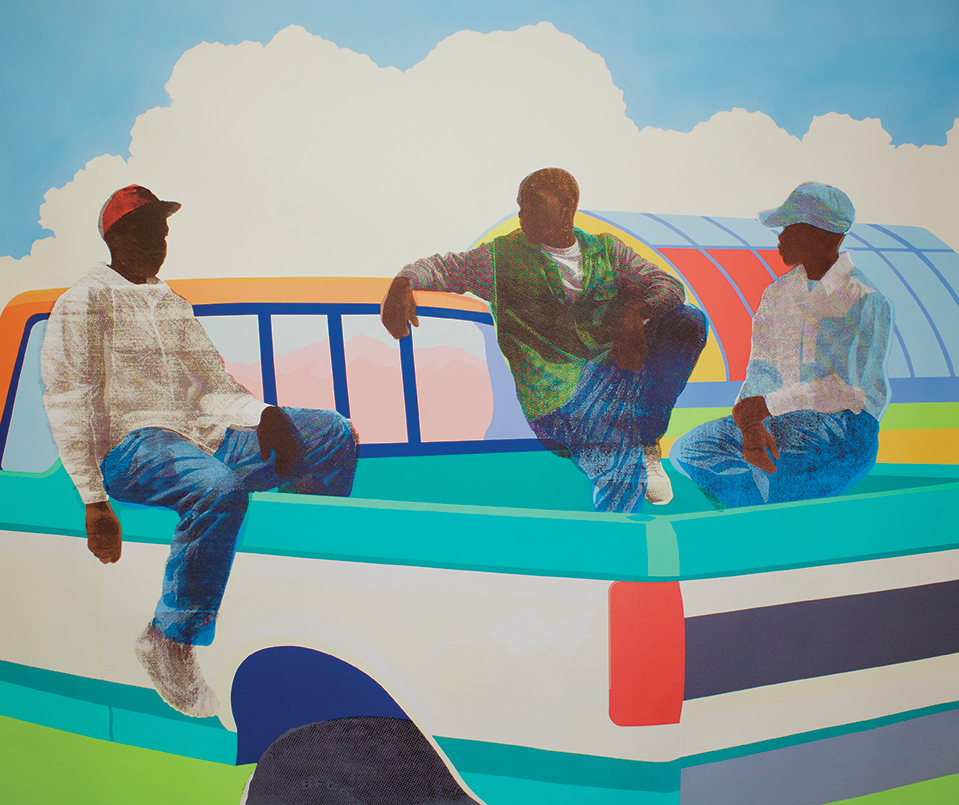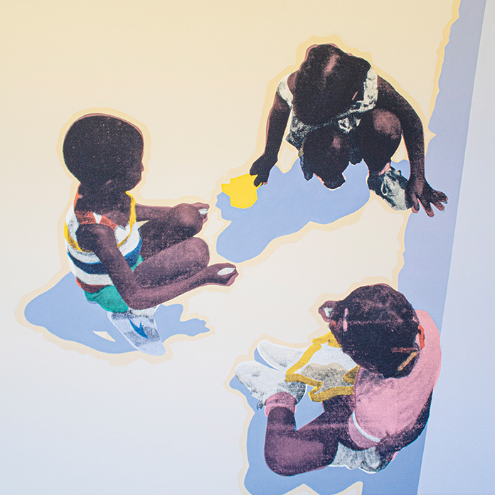 From there, I scale things up onto life-sized canvases, focusing first on bright colors and flat shapes using brushes and paint. Once I’m happy with the direction of the work, I bring the canvas down onto the floor and screen-print various fragments of that initial collage on top of the painting using half-tone dots. I like to think of these paintings as tapestries of memory and meaning and it’s always an exciting challenge to bring balance between these different approaches to mark-making!