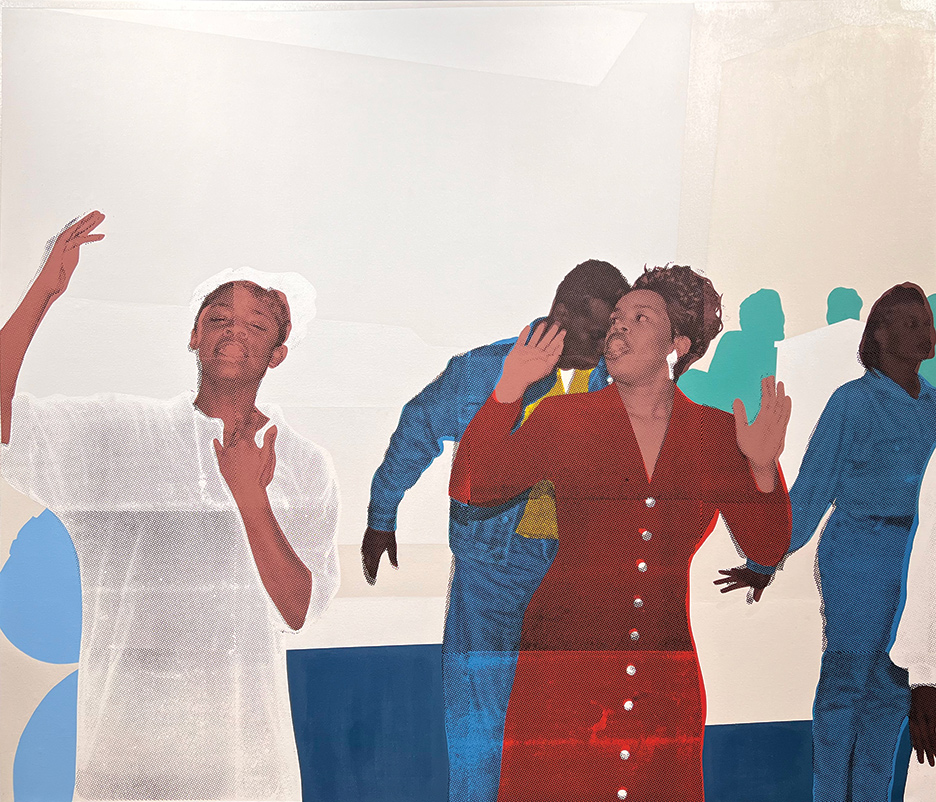 The combination of painting, screen printing, and collage techniques is central to your storytelling. Can you walk us through your creative process and how you decide which mediums to integrate?