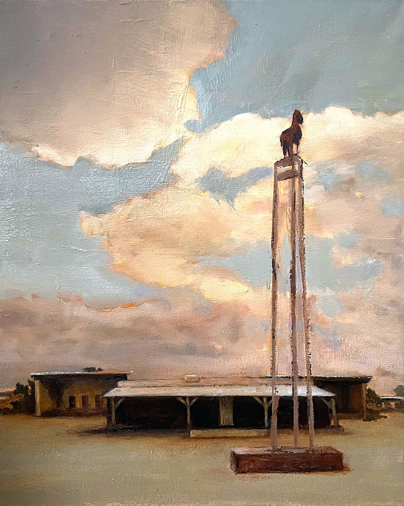 I grew up seeing touristy southwestern art in Southern NM. Think “A cowboy riding a horse through a beautiful canyon at sunset”. As I began exploring the type of work I wanted to create, I developed a strong aversion to painting anything “Southwestern” because it didn’t feel authentic. It was beauty without the severity, and it felt more like a bad advertisement. When I moved to Colorado, I saw it from the outside and noticed the gap between my experience and the art displayed in galleries and museums. What I realized is that the perspective that lovingly presents the severity alongside the beauty was not represented in the dominant art genre. To me, it feels truthful, and I hope others can experience that loving tension when they spend time with my work.