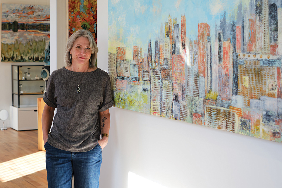 I am striving for a curated, cohesive look while showcasing a variety of styles and mediums among our artists. One medium we feature a bit more than most galleries is encaustic—a wax medium consisting of beeswax and damar resin, with or without pigment. The encaustic process requires heat to melt the wax before it is applied to the substrate. The gallery artists who use this medium are all quite different in their approach and style, showing the range of the medium. Additionally, we also have artists who work with oil, cold wax, acrylic, watercolor, collage, printmaking, clay, metal and wood.